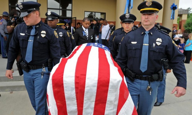 A funeral was held Saturday for one of two Mississippi police officers shot to death a week ago during a traffic stop. Hundreds of mourners and law enforcement officers from around the country paid their respects to 25-year-old Officer Liquori Tate. Nicki Mayo reports.